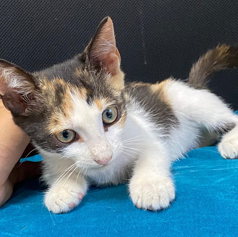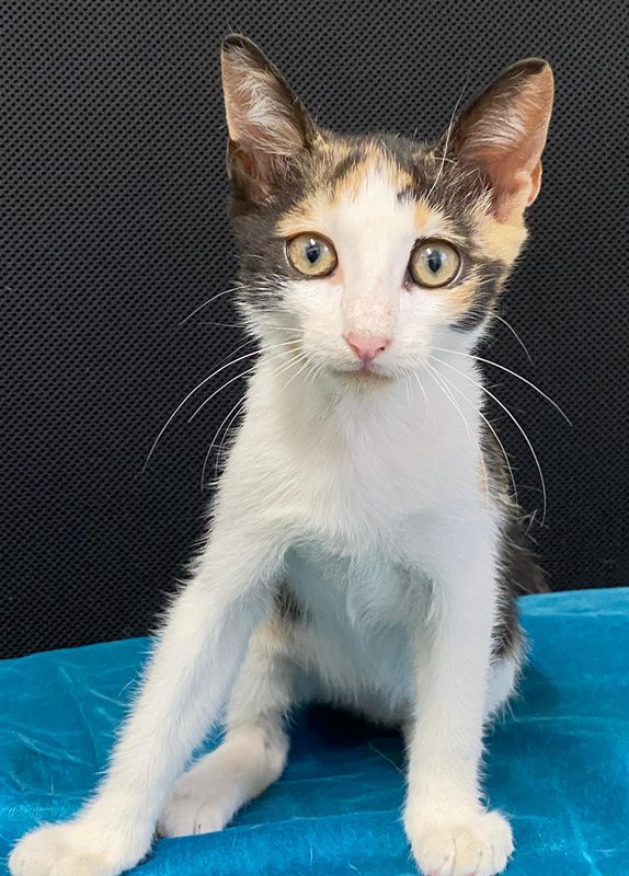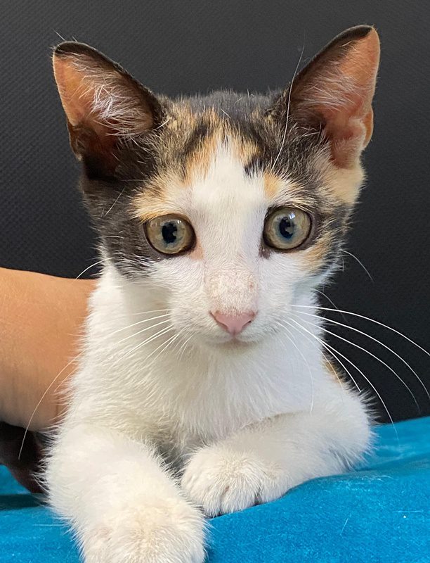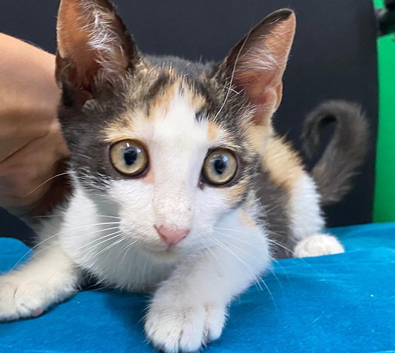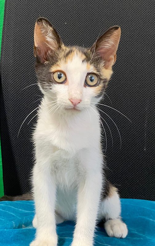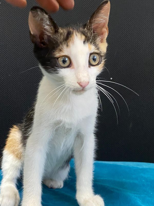 Dorle ist wirklich etwas Besonderes. Sie hat ein wunderschönes Fellmuster in Weiß, Schwarz und Rotbraun. Solche dreifarbigen Katzen werden auch als Glückskatzen bezeichnet – und angesichts der Tatsache, dass Dorle Hilfe bekam und nun selbst Glück schenken kann, passt diese Bezeichnung perfekt zu ihr. Mit ihren gelbgrünen Augen und ihrem tollen Charakter hat sie uns sofort verzaubert.