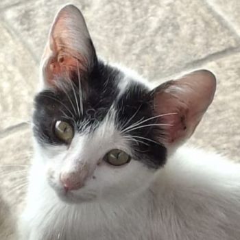 Siroka ist eine wirklich hübsche, zweifarbige Katze in Weiß und Schwarz. In ihrem zierlichen Gesicht trägt sie eine wunderschöne Zeichnung und hat große, grüne Augen.